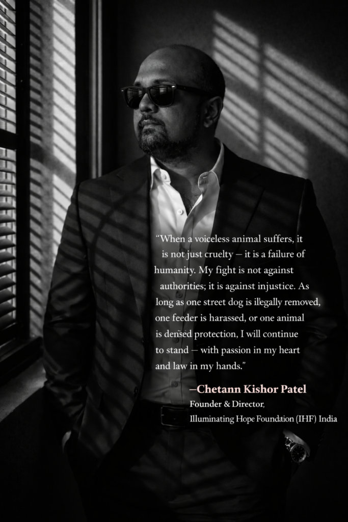 From the bustling streets of Mumbai to towns and cities across the nation, Chetann Kishor Patel has emerged as a relentless defender of the voiceless. An animal lover by heart, an Animals Rights Legal Advisor by profession, and the Founder & Director of Illuminating Hope Foundation (IHF), Patel has transformed compassion into a powerful legal movement that is reshaping the way India responds to cruelty against animals.