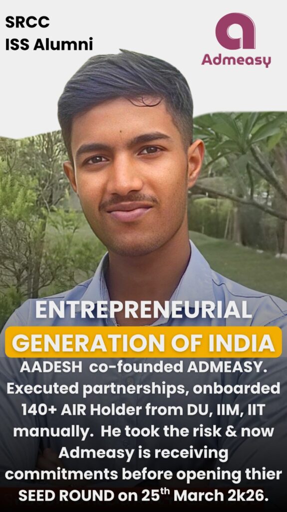 Ahsan and Aadesh Pawar — Admeasy’s CEO and an SRCC graduate — first connected on Medial, a startup community backed by Shark Tank India. What started as a conversation between two young people who saw the same problem became a founding team.